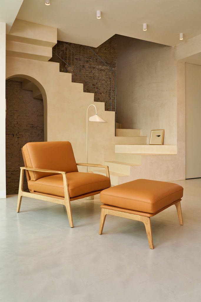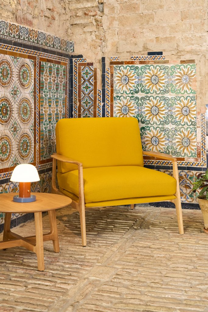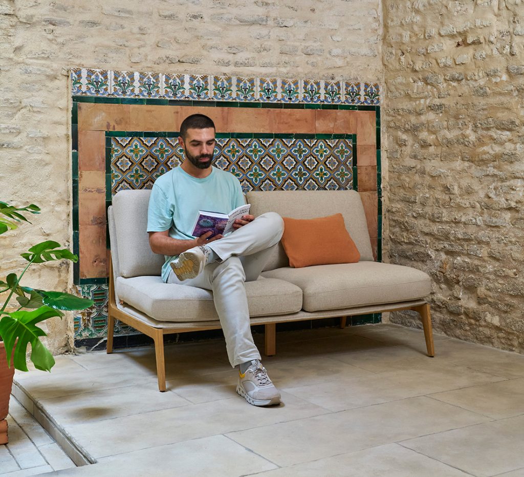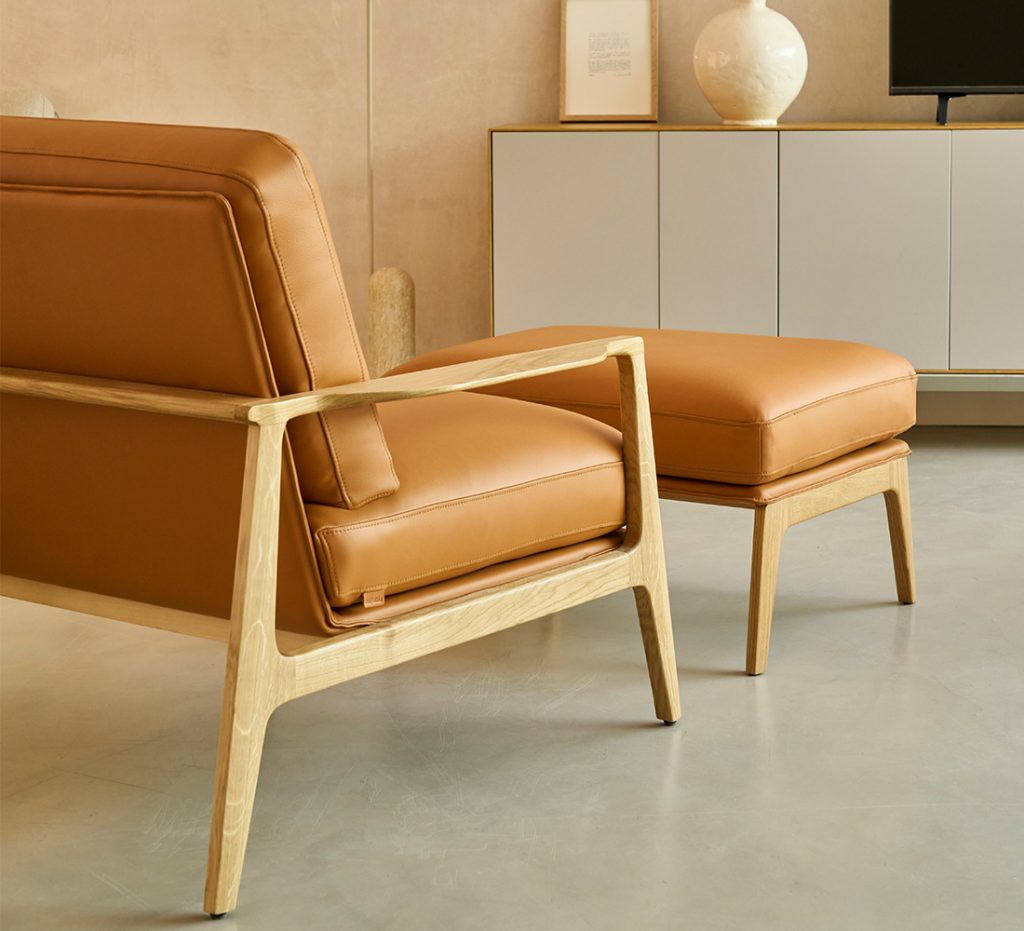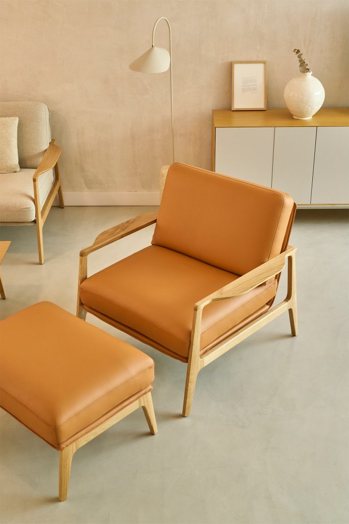 Aldea combina una estructura de madera robusta y elegante con un diseño minimalista realzado por un exquisito tapizado. Su estética atemporal y materiales nobles generan un refugio personal que invita a la reflexión.
