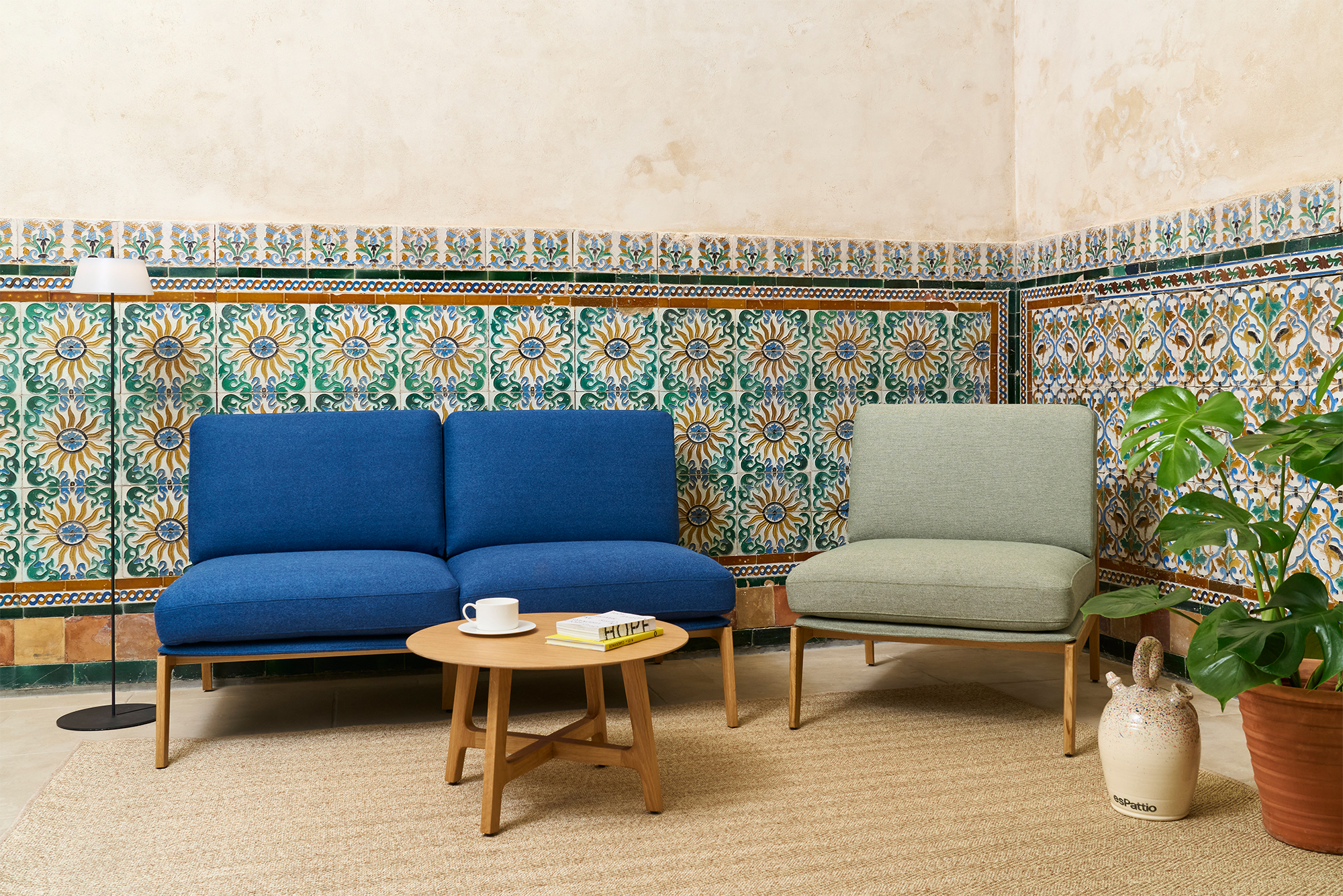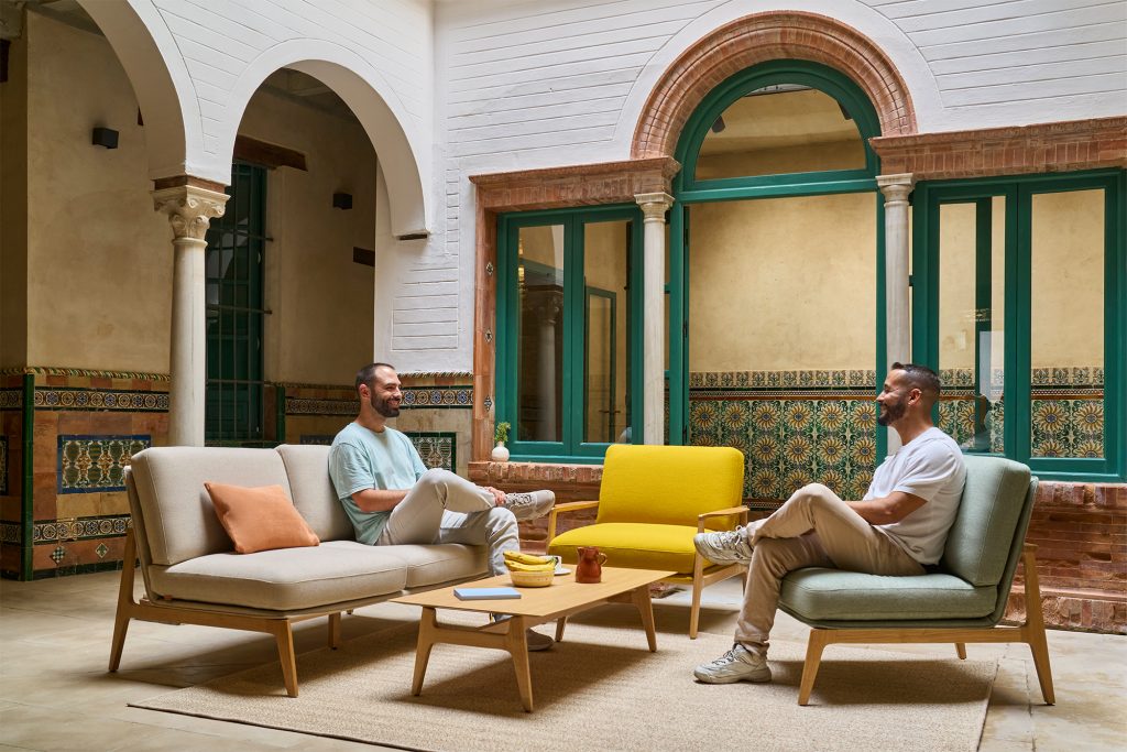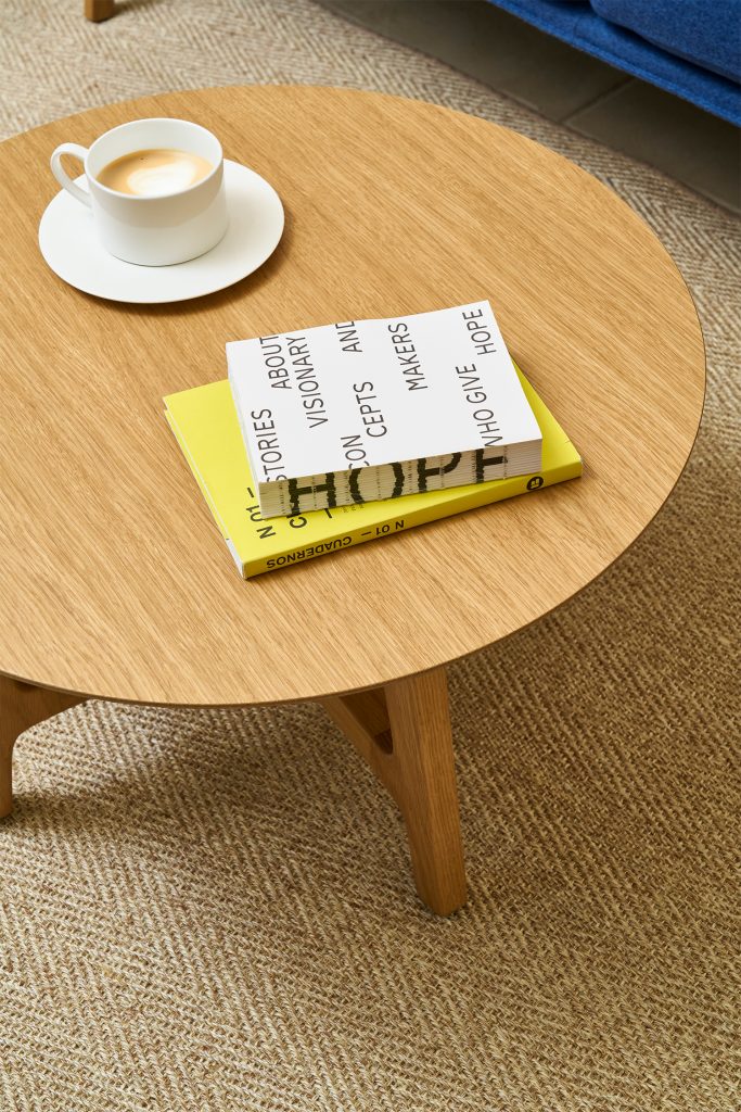 La estructura de madera de las mesas aporta calidez y cohesión, equilibrando solidez y ligereza. Así, crea espacios que combinan funcionalidad y emoción, invitando tanto a la relajación como a las conexiones humanas más íntimas.