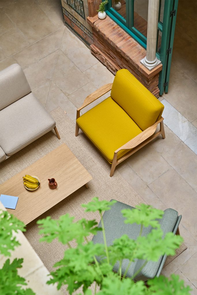 Aldea introduce un espíritu acogedor en los entornos de trabajo, convirtiéndose en un espacio donde la madera adquiere protagonismo y el confort se hace tangible.