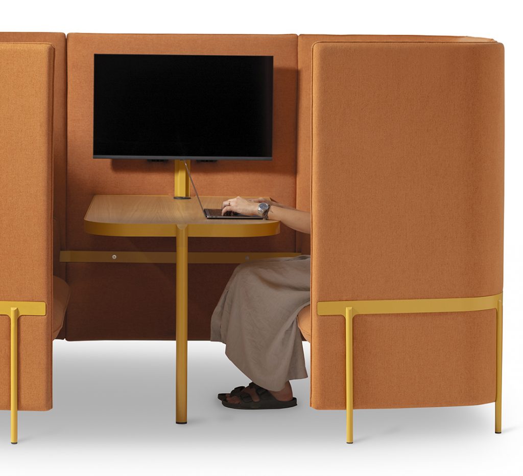 The integrated electrification of Marina Panels’ facing armchairs and sofas invites both solo work and enhanced meetings through its TV mount. In this way, every space it occupies becomes a stage where technology and comfort intertwine.