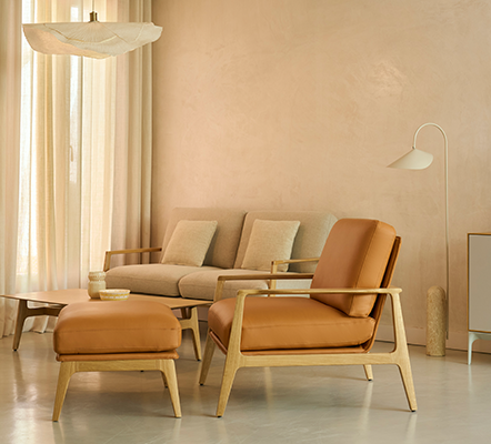 La esencia de Aldea se encuentra en la nobleza de sus materiales y en la serenidad de su diseño. El bastidor de madera de roble aporta calidez, firmeza y carácter al conjunto, mientras que las tapicerías, combinadas con distintas densidades de espuma, envuelven al usuario en una experiencia de confort equilibrado y acogedor. Cada butaca, ottoman o mesa está concebida como un elemento autónomo que, al combinarse, multiplica las posibilidades de configuración: desde generar un rincón íntimo hasta definir un área de encuentro más amplia. Una serie que es capaz por si misma de reforzar la presencia y elevar la imagen de marca de cada proyecto. La combinación de flexibilidad, líneas puras y materiales premium hace de Aldea una solución ideal para oficinas, hoteles y espacios lounge. Bajo la visión de Christophe Pillet, la colección alcanza un equilibrio entre sencillez y sofisticación que la convierte en mucho más que una butaca: una propuesta de diseño capaz de inspirar nuevas formas de habitar los espacios.