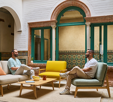 Cada pieza está pensada para ofrecer un refugio personal, ya sea en oficinas, hoteles o espacios sociales, gracias a la cuidada proporción de sus volúmenes, el tacto amable de sus tejidos y la solidez del roble que estructura la colección. A ello se suma un compromiso con la sostenibilidad y una selección de materiales que transmiten el sello de esPattio: Luz, Color y Calor.