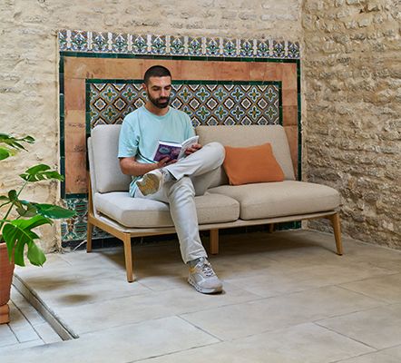 En esPattio llevamos por bandera colaborar con los diseñadores más prestigiosos del panorama internacional, y en Aldea hemos sumado la sensibilidad y la experiencia de Christophe Pillet, una de las voces más reconocidas y respetadas del diseño contemporáneo. Para Pillet, el punto de partida fue claro: concebir una colección que transmitiera serenidad y que, al mismo tiempo, pudiera integrarse con naturalidad en la vida diaria de los espacios. No se trata de crear un mobiliario que busque el protagonismo visual inmediato, sino de dar forma a piezas que se sientan cercanas, honestas y humanas.